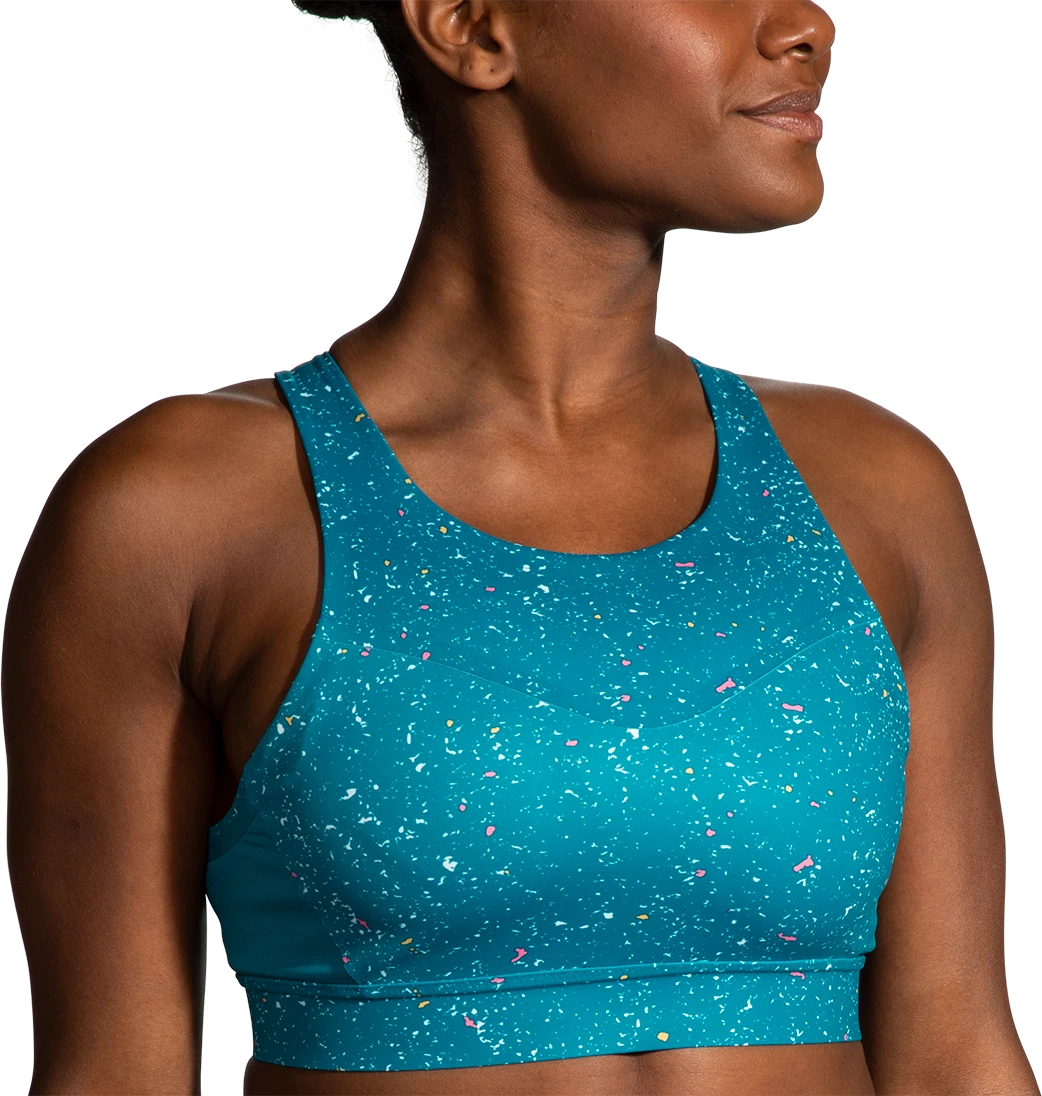 Run without worries — your search for a sports bra with phone pocket is over. This smooth, sleek bra offers motion-reducing, compressive, high-impact support and multiple pockets for storage — including one for your phone.