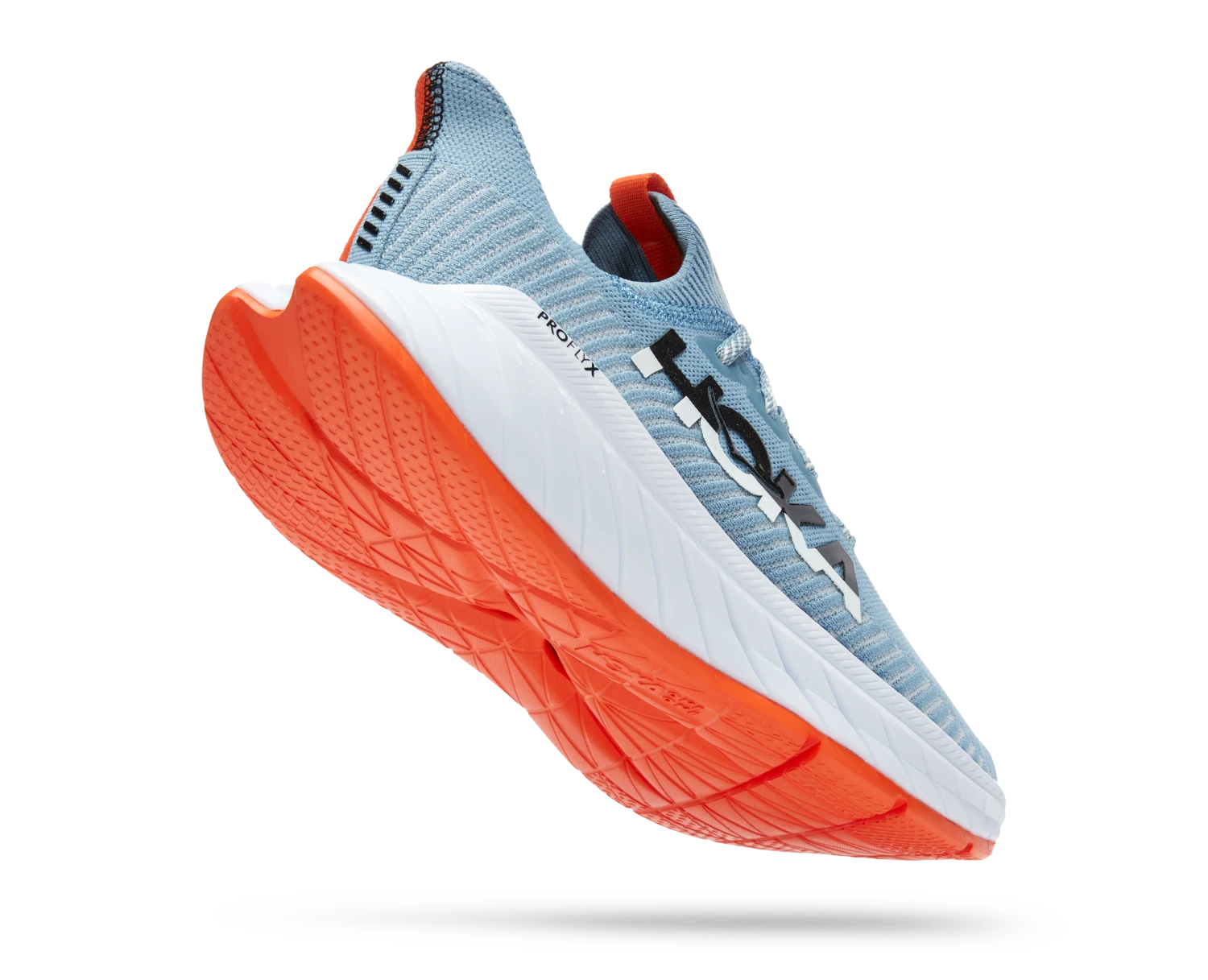 Delivering an even more propulsive ride than its predecessor through an energized new foam midsole, the new Carbon X 3 launches off the line with a brand new upper. Reworked with a premium performance knit for improved fit, this endurance racer is engineered with the same responsive, carbon fiber plate and aggressive Meta-Rocker. A formidable competitor, this performance shoe is finished with bold, asymmetrical coloring for a statement – making finish.