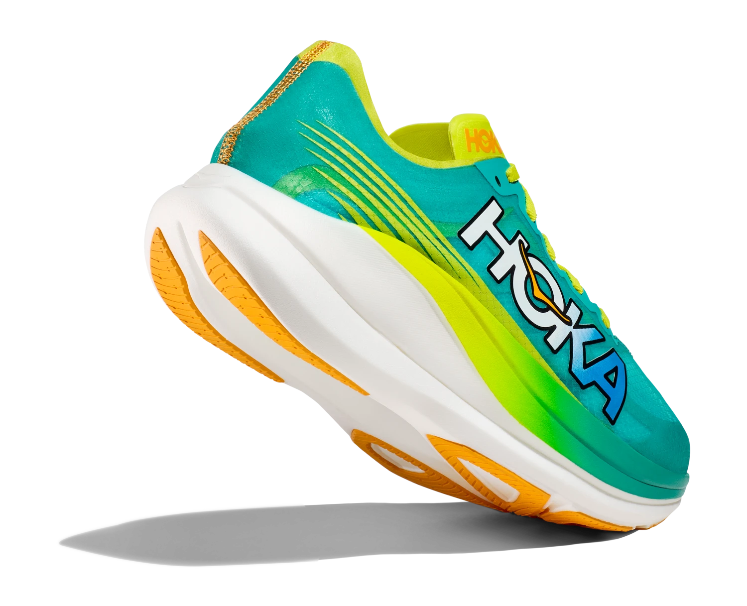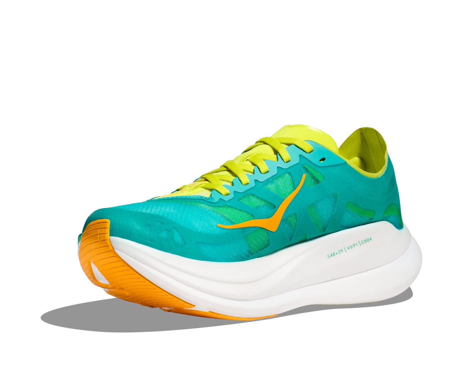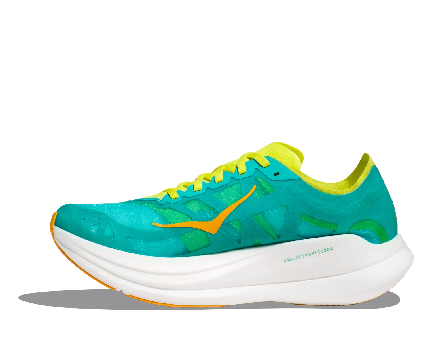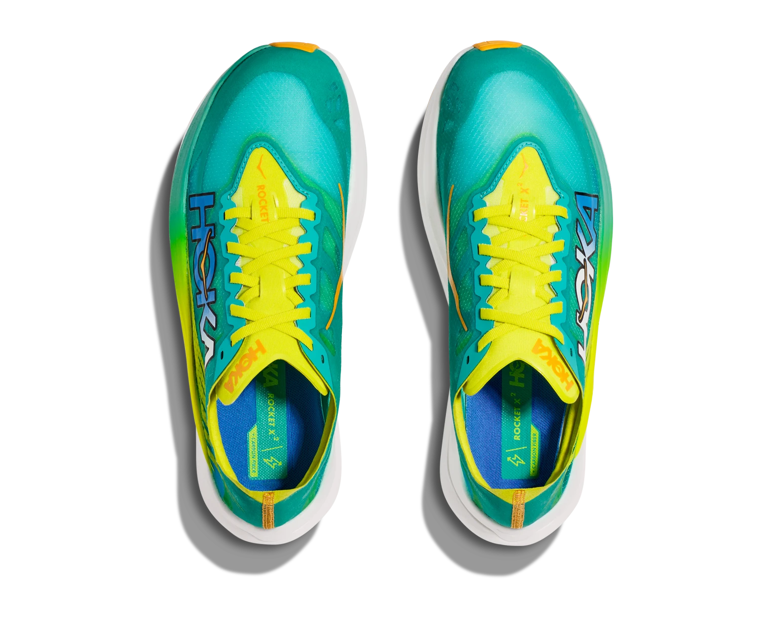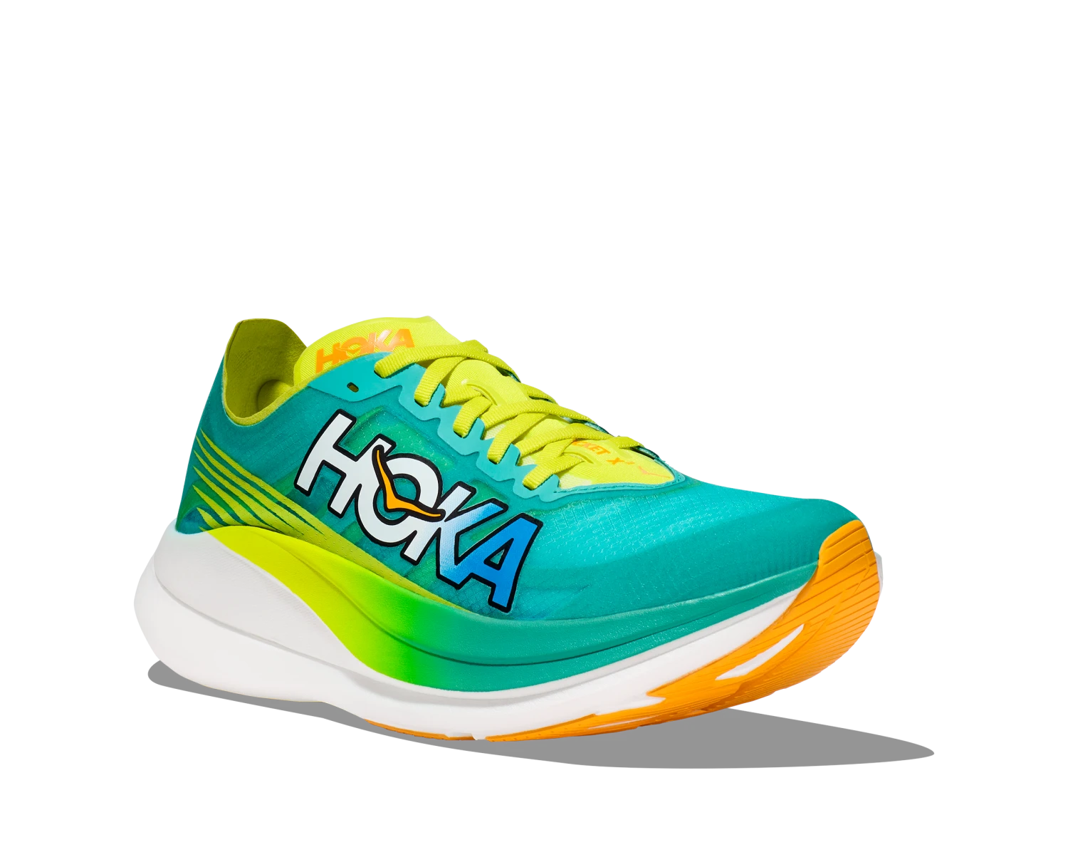 A tip-of-the-spear product geared for elite runners, the Rocket X 2 has been amplified with a hyper-focus on construction. We’ve remastered the geometry of our propulsive carbon fiber plate, sandwiching it between two layers of a brand-new, ultra-responsive, high-performance foam. Employing a technical synthetic mesh upper for a foot-hugging fit, this front-of-the-pack shoe enlists a sleek gusset and internal midfoot cage for race-ready lockdown. How it’s different: A totally new shoe from top to bottom, the Rocket X 2 has been refined with new geometries, a new upper, and brand-new foam. Why you’ll love it: It’s your “go-fast go-to.”